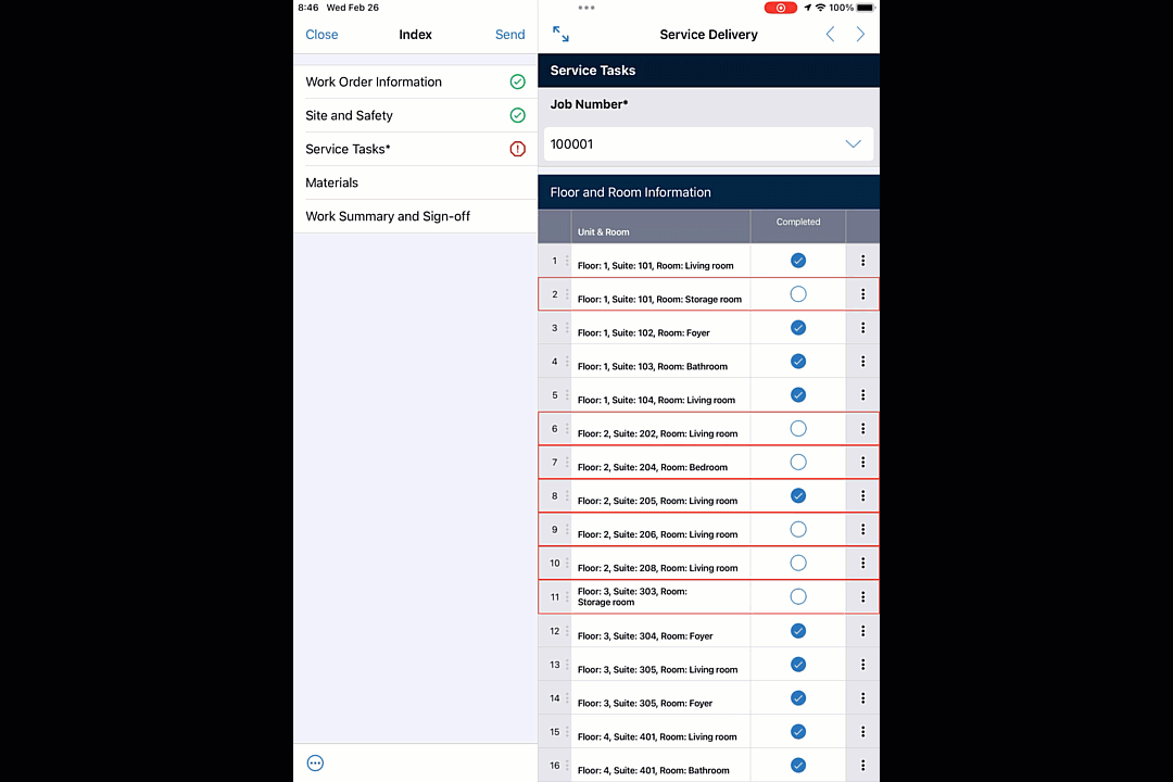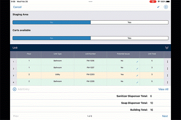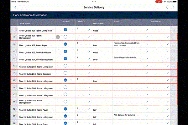 As shown in the animation above, a subform collects information about each building. When an app user selects a Work Order, the Repeatable Section automatically generates a row for each address in a building complex.