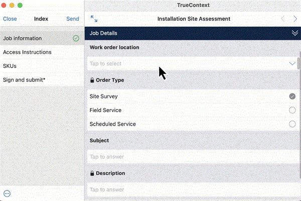 Many of our customers collect large volumes of data. By integrating data sources with repeatable sections, TrueContext enables app users to quickly navigate to relevant reference and data entry points. This reduces the number of taps and screen swipes while providing sufficient information to assess a situation at a glance.