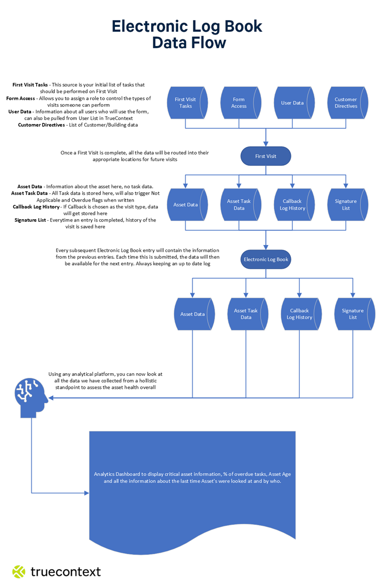 Take a look at this data flow document showing how the electronic log book is at the heart of these Workflows that make up the Asset Management Solution.